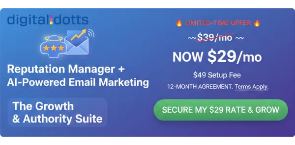 Subscription: $29/mo (includes Reputation + Email + AI Responses).